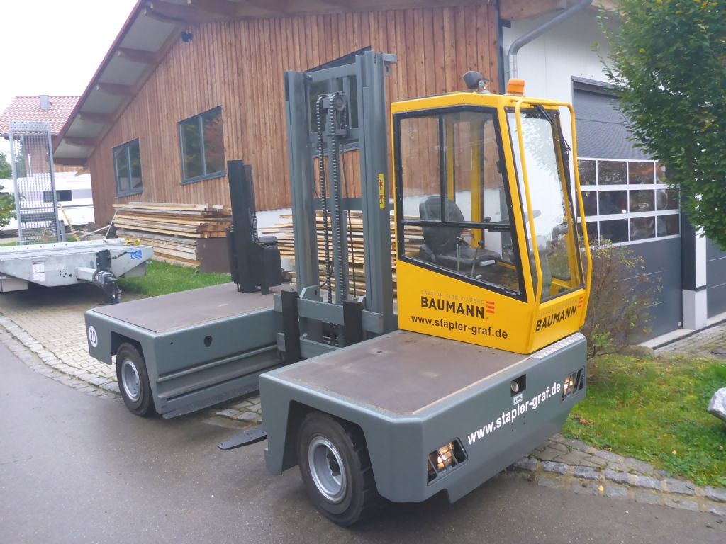 Hersteller: Baumann Typ: HX40/12/40 Bauart: Seitenstapler Antriebsart: Diesel Tragkraft: 4000 kg Baujahr: 2008 Stunden: 5273 Zustand: gut |
